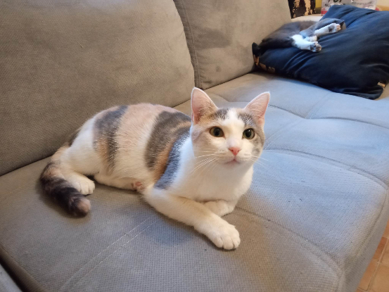 Galatée est jeune, elle a un an et aime les caresses ? Elle n'aime cependant pas être portée. Elle viendra dormir sur votre lit et accompagner vos siestes sur le canapé ?