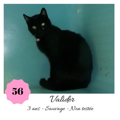 URGENCE EUTHANASIE ! Valider est une belle perle noire de 3 ans sauvage (en situation de fourrière) qui vous attend dans une fourrière du 56. ATTENTION SORTIE AU PLUS TARD LE 06/09/2019 (avant euthanasie)? Pour adopter, c'est facile : ➡️ On se rend sur la page facebook d'Urgence Fourrière de Bretagne (UFB) -> https://www.facebook.com/sosfourrieresbreizh/ ➡️ On vient en message privé sur la page UFB ➡️ On remplit le questionnaire ➡️ Si le questionnaire est validé, on se rend disponible pour la pré-visite ➡️ On se rend aussi disponible pour venir chercher le loulou en fourrière Les chats sortent de fourrière primo-vaccinés et identifiés. Restera à charge de l’adoptant le rappel de vaccin et la stérilisation qui est OBLIGATOIRE. Les femelles en fourrière ayant été trouvées dans la rue, il y a fort à parier que nombre d'entre elles en âge de l'être soient gestantes ... ---- A PROPOS D'URGENCE FOURRIERE DE BRETAGNE (UFB) Nous sommes un COLLECTIF d'ASSOCIATIONS DE PROTECTION ANIMALE (qui rassemble notamment Moustaches et Compagnie, Bêtes de Scène, les Pachas, Chats Libres de Berné, etc, etc....) Le BUT de ce collectif d'associations est donc de SORTIR ces animaux des fourrières surchargées en les faisant ADOPTER de manière LEGALE par des familles ou en leur trouvant des FAMILLES D'ACCUEIL lorsque des places en association se libèrent.