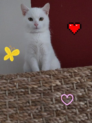 Neige est un très gentil chaton de 3 mois et demi, très câlin mais un peu timide.