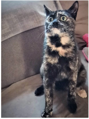 Je suis une jeune minette écaille de tortue, mon petit nom c'est Moggy ! D'après ma famille d'accueil, je suis une vrai pile électrique. Je suis très joueuse et très bavarde, j'adore les câlins... En faite je suis parfaite ! Enfin presque, je ne m'entends pas avec les chiens, mais avec mes congénères si ! Cependant comme je suis un peu une princesse, je crois que je préfèrerais avoir ma famille pour moi toute seule.