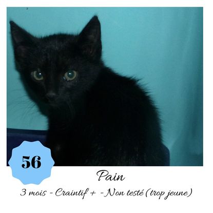 URGENCE EUTHANASIE ! Pain est un chaton de 3 mois craintif (en situation de fourrière) qui recherche une famille patiente pour le mettre à l'aise. Il vous attend dans une fourrière du 56. ATTENTION SORTIE AU PLUS TARD LE 13/09/2019 (avant euthanasie)! Pour adopter, c'est facile : ➡️ On se rend sur la page facebook d'Urgence Fourrière de Bretagne (UFB) -> https://www.facebook.com/sosfourrieresbreizh/ ➡️ On vient en message privé sur la page UFB ➡️ On remplit le questionnaire ➡️ Si le questionnaire est validé, on se rend disponible pour la pré-visite ➡️ On se rend aussi disponible pour venir chercher le loulou en fourrière Les chats sortent de fourrière primo-vaccinés et identifiés. Restera à charge de l’adoptant le rappel de vaccin et la stérilisation qui est OBLIGATOIRE. ---- A PROPOS D'URGENCE FOURRIERE DE BRETAGNE (UFB) Nous sommes un COLLECTIF d'ASSOCIATIONS DE PROTECTION ANIMALE (qui rassemble notamment Moustaches et Compagnie, Bêtes de Scène, les Pachas, Chats Libres de Berné, etc, etc....) Le BUT de ce collectif d'associations est donc de SORTIR ces animaux des fourrières surchargées en les faisant ADOPTER de manière LEGALE par des familles ou en leur trouvant des FAMILLES D'ACCUEIL lorsque des places en association se libèrent.