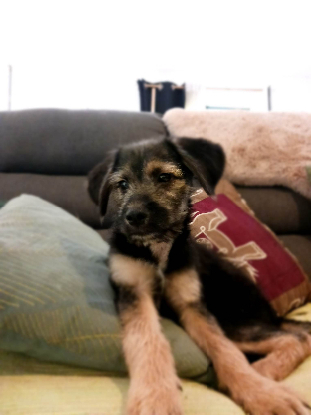 Comme tout chiot, il fait quelques bêtises, il découvre et apprend vite. Il faudra lui transmettre vos règles et l'éduquer avec bienveillance.