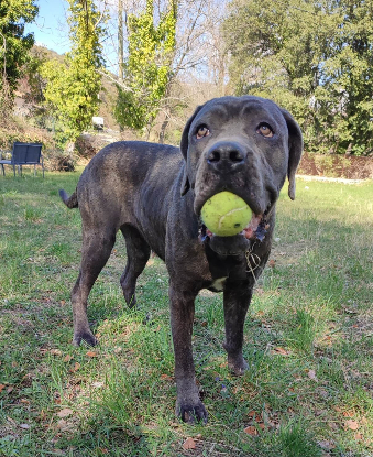 Je suis une jeune Cane Corso de 2ans toujours joyeuse et toujours bébé dans ma tête. Je suis une parfaite chienne de famille même si je peux être un peu brutus donc attention avec les jeunes enfants.