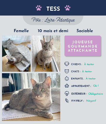 Coucou, moi c’est Tess ! Je suis une jeune femelle de 10 mois et demi.