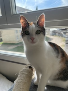 Tiffany est une petite chatte tricolore de 2 ans. Elle est très câline et joueuse, mais timide. Elle a donc besoin de temps pour s'habituer à son nouveau foyer. Elle aime la compagnie des autres chats et un environnement calme.