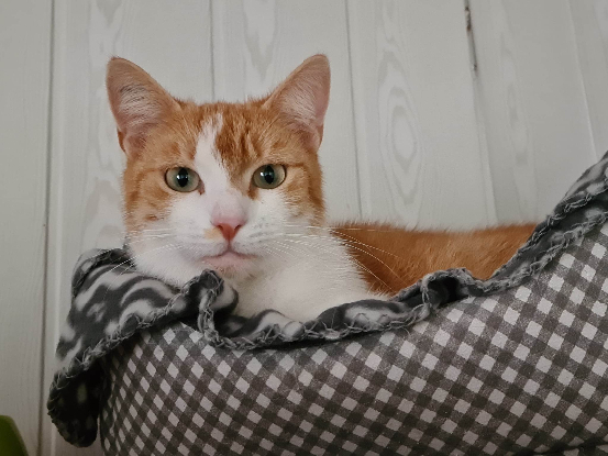 Chat mâle, type Européen, coloris roux et blanc. Né le 13 mai 2020