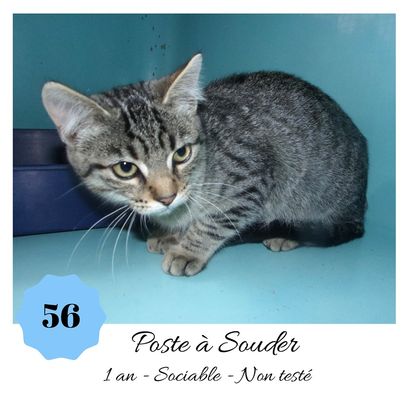URGENCE EUTHANASIE ! Poste à souder est un chat de 1 an sociable qui attend dans une fourrière du 56. ATTENTION SORTIE AU PLUS TARD LE 21/09/2019 (avant euthanasie)! Pour adopter, c'est facile : ➡️ On se rend sur la page facebook d'Urgence Fourrière de Bretagne (UFB) -> https://www.facebook.com/sosfourrieresbreizh/ ➡️ On vient en message privé sur la page UFB ➡️ On remplit le questionnaire ➡️ Si le questionnaire est validé, on se rend disponible pour la pré-visite ➡️ On se rend aussi disponible pour venir chercher le loulou en fourrière Les chats sortent de fourrière primo-vaccinés et identifiés. Restera à charge de l’adoptant le rappel de vaccin et la stérilisation qui est OBLIGATOIRE. ---- A PROPOS D'URGENCE FOURRIERE DE BRETAGNE (UFB) Nous sommes un COLLECTIF d'ASSOCIATIONS DE PROTECTION ANIMALE (qui rassemble notamment Moustaches et Compagnie, Bêtes de Scène, les Pachas, Chats Libres de Berné, etc, etc....) Le BUT de ce collectif d'associations est donc de SORTIR ces animaux des fourrières surchargées en les faisant ADOPTER de manière LEGALE par des familles ou en leur trouvant des FAMILLES D'ACCUEIL lorsque des places en association se libèrent.