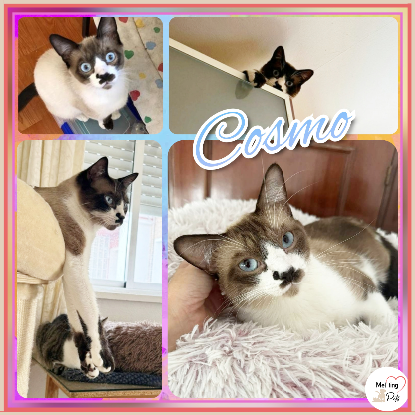 COSMO est un adorable chat, extrêmement doux et affectueux. Il est également joueur et très actif.