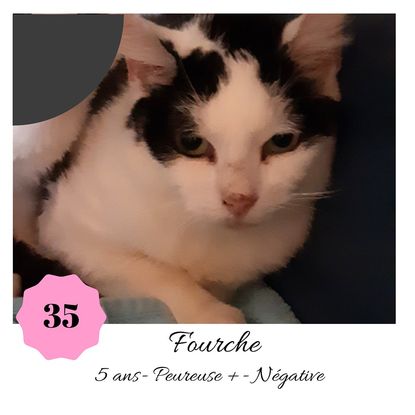 URGENCE EUTHANASIE ! Fourche est une jolie minette de 5 ans peureuse (en situation fourrière) qui vous attend dans une fourrière du 35. ATTENTION SORTIE AU PLUS TARD LE 21/09/2019 (avant euthanasie)! Pour adopter, c'est facile : ➡️ On se rend sur la page facebook d'Urgence Fourrière de Bretagne (UFB) -> https://www.facebook.com/sosfourrieresbreizh/ ➡️ On vient en message privé sur la page UFB ➡️ On remplit le questionnaire ➡️ Si le questionnaire est validé, on se rend disponible pour la pré-visite ➡️ On se rend aussi disponible pour venir chercher le loulou en fourrière Les chats sortent de fourrière primo-vaccinés et identifiés. Restera à charge de l’adoptant le rappel de vaccin et la stérilisation qui est OBLIGATOIRE. Les femelles en fourrière ayant été trouvées dans la rue, il y a fort à parier que nombre d'entre elles en âge de l'être soient gestantes ... ---- A PROPOS D'URGENCE FOURRIERE DE BRETAGNE (UFB) Nous sommes un COLLECTIF d'ASSOCIATIONS DE PROTECTION ANIMALE (qui rassemble notamment Moustaches et Compagnie, Bêtes de Scène, les Pachas, Chats Libres de Berné, etc, etc....) Le BUT de ce collectif d'associations est donc de SORTIR ces animaux des fourrières surchargées en les faisant ADOPTER de manière LEGALE par des familles ou en leur trouvant des FAMILLES D'ACCUEIL lorsque des places en association se libèrent.