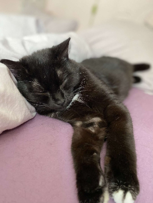 Pom a 2 ans et vient de fourrière. Chat de famille par excellence, il s'entend bien avec les chats et les chiens. Adorable avec les enfants et ne fait pas mal quand il joue. Il adore dormir à côté de sa FA quand elle lit et aime donner des petits coup de tête dans son livre pour être caressé.