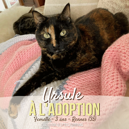 A cause de ses débuts difficiles dans la vie, Ursule est une jeune chatte au premier abord craintive, vigilante et timide. Il faudra prendre le temps de la rassurer et de gagner sa confiance.