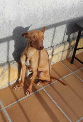 LOVA 2 ans environ 40 cm au garrot et 5.5 kg alors qu'elle devrait peser au moins 10 kg , sociable. OK congénères. Test chat à prévoir plus tard.