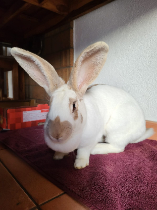 Canelle est un lapin femelle, Géant papillon de couleur Blanc/lynx.