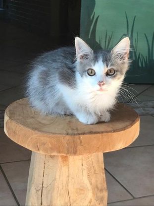 2 mois - Cette chatonne ont été recueillie suite au décès d’une personne ayant plusieurs chats. Paillette, grise et blanche avec le poil mi-long, est timide mais très affectueuse. Un don est demandé pour chaque adoption.