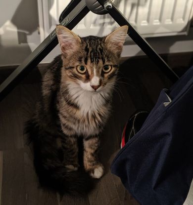 C'est un jeune mâle adorable et très sociable mis à l'abri après avoir erré plusieurs jours en bas d'un immeuble