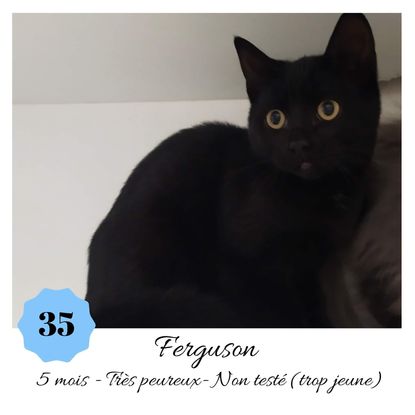 URGENCE EUTHANASIE ! Ferguson est un chaton de 4 mois peureux (en situation de fourrière qui vous attend dans une fourrière du 35. ATTENTION SORTIE AU PLUS TARD LE 4/10/2019 (avant euthanasie)! Pour adopter, c'est facile : ➡️ On se rend sur la page facebook d'Urgence Fourrière de Bretagne (UFB) -> https://www.facebook.com/sosfourrieresbreizh/ ➡️ On vient en message privé sur la page UFB ➡️ On remplit le questionnaire ➡️ Si le questionnaire est validé, on se rend disponible pour la pré-visite ➡️ On se rend aussi disponible pour venir chercher le loulou en fourrière Les chats sortent de fourrière primo-vaccinés et identifiés. Restera à charge de l’adoptant le rappel de vaccin et la stérilisation qui est OBLIGATOIRE. Les femelles en fourrière ayant été trouvées dans la rue, il y a fort à parier que nombre d'entre elles en âge de l'être soient gestantes ... ---- A PROPOS D'URGENCE FOURRIERE DE BRETAGNE (UFB) Nous sommes un COLLECTIF d'ASSOCIATIONS DE PROTECTION ANIMALE (qui rassemble notamment Moustaches et Compagnie, Bêtes de Scène, les Pachas, Chats Libres de Berné, etc, etc....) Le BUT de ce collectif d'associations est donc de SORTIR ces animaux des fourrières surchargées en les faisant ADOPTER de manière LEGALE par des familles ou en leur trouvant des FAMILLES D'ACCUEIL lorsque des places en association se libèrent.
