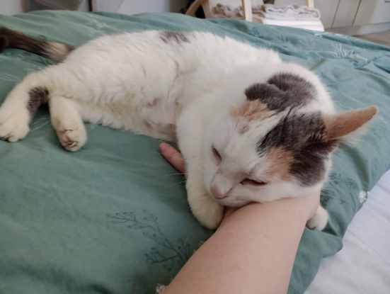 Il a fallu malheureusement lui retirer une oreille suite à un début de cancer. Mais elle garde tout son charme !
