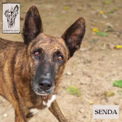 SON CARACTERE : Très calme, elle ne cherche pas à interagir avec les autres chiens bien qu'elle s'entend bien avec tous les mâles et les femelles. Elle n'aime pas être seule et est capable de sauter si elle est enfermée. Nous recherchons pour elle une famille présente et qui saura donner à Senda la stabilité dont elle a besoin.
