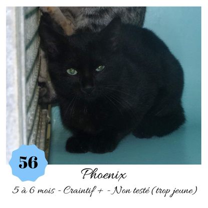 URGENCE EUTHANASIE ! Phoenix est un matou de 5 mois craintive (en situation de fourrière) qui vous attend dans une fourrière du 56. ATTENTION SORTIE AU PLUS TARD LE 4/10/2019 (avant euthanasie)! Pour adopter, c'est facile : ➡️ On se rend sur la page facebook d'Urgence Fourrière de Bretagne (UFB) -> https://www.facebook.com/sosfourrieresbreizh/ ➡️ On vient en message privé sur la page UFB ➡️ On remplit le questionnaire ➡️ Si le questionnaire est validé, on se rend disponible pour la pré-visite ➡️ On se rend aussi disponible pour venir chercher le loulou en fourrière Les chats sortent de fourrière primo-vaccinés et identifiés. Restera à charge de l’adoptant le rappel de vaccin et la stérilisation qui est OBLIGATOIRE. Les femelles en fourrière ayant été trouvées dans la rue, il y a fort à parier que nombre d'entre elles en âge de l'être soient gestantes ... ---- A PROPOS D'URGENCE FOURRIERE DE BRETAGNE (UFB) Nous sommes un COLLECTIF d'ASSOCIATIONS DE PROTECTION ANIMALE (qui rassemble notamment Moustaches et Compagnie, Bêtes de Scène, les Pachas, Chats Libres de Berné, etc, etc....) Le BUT de ce collectif d'associations est donc de SORTIR ces animaux des fourrières surchargées en les faisant ADOPTER de manière LEGALE par des familles ou en leur trouvant des FAMILLES D'ACCUEIL lorsque des places en association se libèrent.