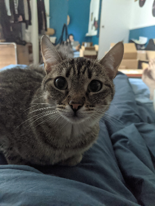 Si appartement, la présence d'un congénère jeune et joueur serait nécessaire pour qu'elle ne s'ennuie pas. Xena est habituée aux congénères.
