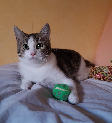 Acajou, alors.. nom vernaculaire qui.. oh ! Je me suis trompée, vous souhaitez que je parle de moi ! Comme beaucoup de mes congénères en ces temps incertains, j'ai été trappée sur un site de prolifération et mise à l'abri. Si au début j'étais forcément craintive, avec le temps je me révèle câline. Comme le bois je suis durable ! Eh oui ! J'aime les câlins, faire de bonnes siestes sur un arbre à chat et jouer au ping pong. Vous avez bien lu, la baballe. Entre sauts périlleux et poursuite de ma balle fétiche, pas de quoi s'ennuyer avec moi !