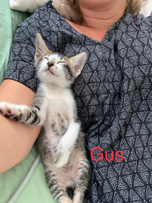 Ce ptits Gus est issu d'une portée de 4 chatons, de femelles errantes et sauvages que nous stérilisons petit à petit. Ils ont pu être sevrés par leur maman avant d'être placés en famille d'accueil.