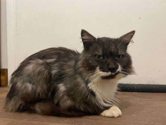 Hysope a été trouvé dehors cherchant de la nourriture et de l’attention. On a dû lui couper beaucoup de poils à son arrivée car il y avait beaucoup de noeuds, pas d’inquiétudes c’est déjà en train de repousser.
