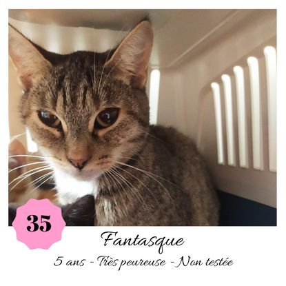 URGENCE EUTHANASIE ! Fantasque est une minette de 5 ans peureuse (en situation de fourrière) qui vous attend dans une fourrière du 35. ATTENTION SORTIE AU PLUS TARD LE 11/10/2019 (avant euthanasie)! Pour adopter, c'est facile : ➡️ On se rend sur la page facebook d'Urgence Fourrière de Bretagne (UFB) -> https://www.facebook.com/sosfourrieresbreizh/ ➡️ On vient en message privé sur la page UFB ➡️ On remplit le questionnaire ➡️ Si le questionnaire est validé, on se rend disponible pour la pré-visite ➡️ On se rend aussi disponible pour venir chercher le loulou en fourrière Les chats sortent de fourrière primo-vaccinés et identifiés. Restera à charge de l’adoptant le rappel de vaccin et la stérilisation qui est OBLIGATOIRE. Les femelles en fourrière ayant été trouvées dans la rue, il y a fort à parier que nombre d'entre elles en âge de l'être soient gestantes ... ---- A PROPOS D'URGENCE FOURRIERE DE BRETAGNE (UFB) Nous sommes un COLLECTIF d'ASSOCIATIONS DE PROTECTION ANIMALE (qui rassemble notamment Moustaches et Compagnie, Bêtes de Scène, les Pachas, Chats Libres de Berné, etc, etc....) Le BUT de ce collectif d'associations est donc de SORTIR ces animaux des fourrières surchargées en les faisant ADOPTER de manière LEGALE par des familles ou en leur trouvant des FAMILLES D'ACCUEIL lorsque des places en association se libèrent.