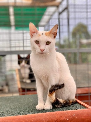 C'est une petite chatte timide qui a besoin d'une famille patiente pour se sentir en confiance. Une fois en confiance, elle se montre très affectueuse.