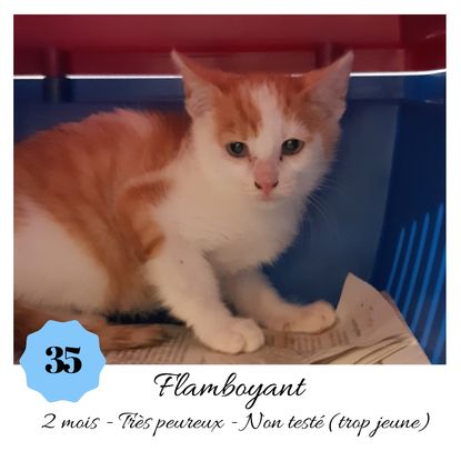 URGENCE EUTHANASIE ! Flamboyant est un chaton de 2 mois peureux (en situation de fourrière) qui vous attend dans une fourrière du 35. ATTENTION SORTIE AU PLUS TARD LE 11/10/2019 (avant euthanasie)! Pour adopter, c'est facile : ➡️ On se rend sur la page facebook d'Urgence Fourrière de Bretagne (UFB) -> https://www.facebook.com/sosfourrieresbreizh/ ➡️ On vient en message privé sur la page UFB ➡️ On remplit le questionnaire ➡️ Si le questionnaire est validé, on se rend disponible pour la pré-visite ➡️ On se rend aussi disponible pour venir chercher le loulou en fourrière Les chats sortent de fourrière primo-vaccinés et identifiés. Restera à charge de l’adoptant le rappel de vaccin et la stérilisation qui est OBLIGATOIRE. Les femelles en fourrière ayant été trouvées dans la rue, il y a fort à parier que nombre d'entre elles en âge de l'être soient gestantes ... ---- A PROPOS D'URGENCE FOURRIERE DE BRETAGNE (UFB) Nous sommes un COLLECTIF d'ASSOCIATIONS DE PROTECTION ANIMALE (qui rassemble notamment Moustaches et Compagnie, Bêtes de Scène, les Pachas, Chats Libres de Berné, etc, etc....) Le BUT de ce collectif d'associations est donc de SORTIR ces animaux des fourrières surchargées en les faisant ADOPTER de manière LEGALE par des familles ou en leur trouvant des FAMILLES D'ACCUEIL lorsque des places en association se libèrent.