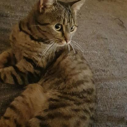 Abandonnée pour cause d’allergies, Fifi est une minette de petit gabarit douce et câline. Ok chats et enfants et appartement.