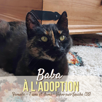 Baba est une chatte très câline, sociable et adorable de 7 ans. En voyant son tempérament serein et sans crainte de l'humain, on pourrait penser qu'elle a eu une vie tranquille.