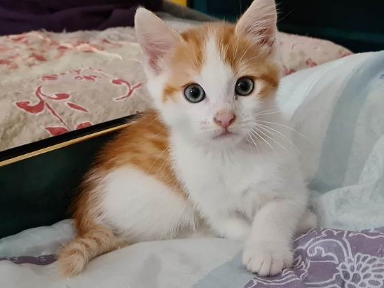 Chaton mâle, type Européen, coloris blanc et roux. Né le 22 mars 2023