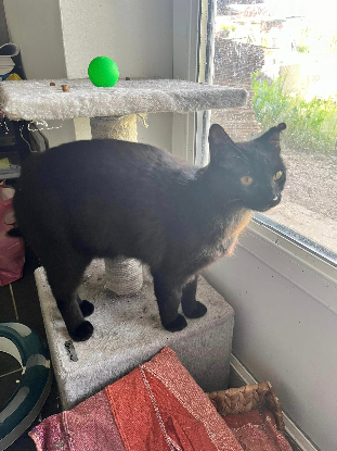 Je suis une petite boule de poils noire aux jolis reflets roux.