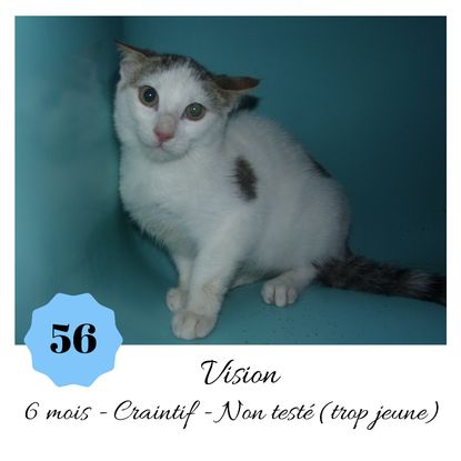 URGENCE EUTHANASIE ! Vision est un beau matou de 6 mois craintif ( en situation de fourrière) qui vous attend dans une fourrière du 56. ATTENTION SORTIE AU PLUS TARD LE 18/10/2019 (avant euthanasie)! Pour adopter, c'est facile : ➡️ On se rend sur la page facebook d'Urgence Fourrière de Bretagne (UFB) -> https://www.facebook.com/sosfourrieresbreizh/ ➡️ On vient en message privé sur la page UFB ➡️ On remplit le questionnaire ➡️ Si le questionnaire est validé, on se rend disponible pour la pré-visite ➡️ On se rend aussi disponible pour venir chercher le loulou en fourrière Les chats sortent de fourrière primo-vaccinés et identifiés. Restera à charge de l’adoptant le rappel de vaccin et la stérilisation qui est OBLIGATOIRE. Les femelles en fourrière ayant été trouvées dans la rue, il y a fort à parier que nombre d'entre elles en âge de l'être soient gestantes ... ---- A PROPOS D'URGENCE FOURRIERE DE BRETAGNE (UFB) Nous sommes un COLLECTIF d'ASSOCIATIONS DE PROTECTION ANIMALE (qui rassemble notamment Moustaches et Compagnie, Bêtes de Scène, les Pachas, Chats Libres de Berné, etc, etc....) Le BUT de ce collectif d'associations est donc de SORTIR ces animaux des fourrières surchargées en les faisant ADOPTER de manière LEGALE par des familles ou en leur trouvant des FAMILLES D'ACCUEIL lorsque des places en association se libèrent.