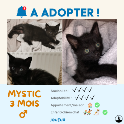Mystic est un chaton très très joueur. Curieux de tout, il croque la vie à pleine dent