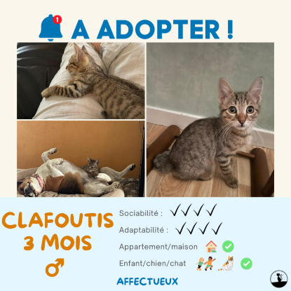 Pour Clafoutis nous cherchons une famille très présente, possédant des animaux ou bien des enfants. Clafoutis demandera beaucoup d’attention, et ne pourra pas être laissé sans en journée.
