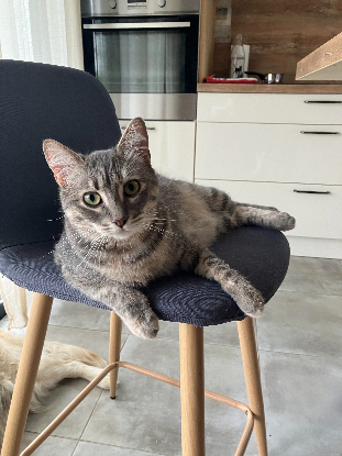 Une jeune chatte un peu timide quand elle ne connait pas mais une fois rassurée, elle adore les câlins.