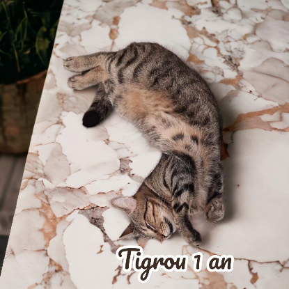 Tigrou est un jeune chat d'environ 1 an. Il est propre.