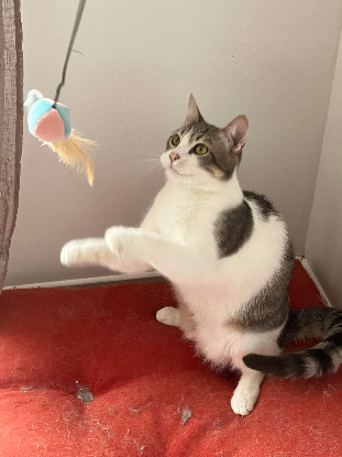 Tiago (11 mois) est un chat bien dans ses pattounes: il est joueur, gourmand et il sait adore les câlins ! C’est un chat vraiment très gentil qui apprécie tout le monde, ses congénères, les chiens et les humains c’est « une bonne patte »,c’est un chat attachant et attendrissant.