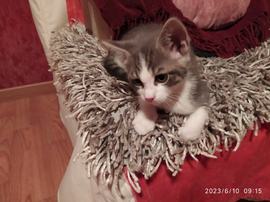 Tigrou est un chaton d'à peine 2 mois. Il est câlin, calme et plein de vie suivant les moments. Il a été élevé en famille d'accueil avec sa maman et ses 4 frères et sœurs.
