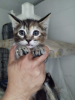 C'est une petite chatte restée timide. Elle évolue parfaitement au milieu des humains qu'elle connait mais n'accepte pas nécessairement le contact.