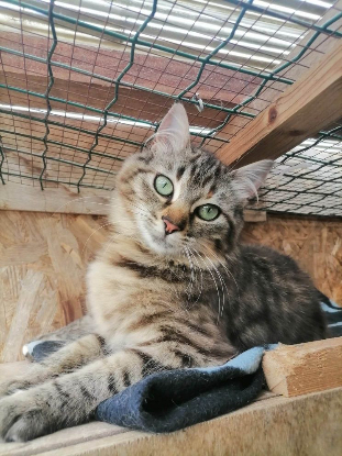Caractère : VICTOIRE est une adorable minette. Elle est attachante car craintive à son arrivée elle nous a accordé sa confiance et apprécie particulièrement les caresses et le jeu. Elle ronronne aussi beaucoup.