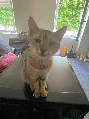 Taéko est un chat très câlin, calme et très proche des chiens. Il adore également les enfants. Il a 1 an. Un petit extérieur lui conviendrait.
