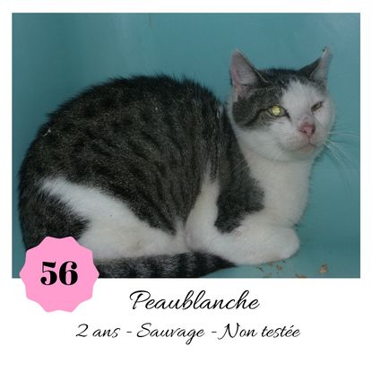 URGENCE EUTHANASIE ! Peau Blanche est une minette de 2 ans sauvage (en situation de fourrière) qui vous attend dans une fourrière du 56. ATTENTION SORTIE AU PLUS TARD LE 25/10/2019 (avant euthanasie)! Pour adopter, c'est facile : ➡️ On se rend sur la page facebook d'Urgence Fourrière de Bretagne (UFB) -> https://www.facebook.com/sosfourrieresbreizh/ ➡️ On vient en message privé sur la page UFB ➡️ On remplit le questionnaire ➡️ Si le questionnaire est validé, on se rend disponible pour la pré-visite ➡️ On se rend aussi disponible pour venir chercher le loulou en fourrière Les chats sortent de fourrière primo-vaccinés et identifiés. Restera à charge de l’adoptant le rappel de vaccin et la stérilisation qui est OBLIGATOIRE. Les femelles en fourrière ayant été trouvées dans la rue, il y a fort à parier que nombre d'entre elles en âge de l'être soient gestantes ... ---- A PROPOS D'URGENCE FOURRIERE DE BRETAGNE (UFB) Nous sommes un COLLECTIF d'ASSOCIATIONS DE PROTECTION ANIMALE (qui rassemble notamment Moustaches et Compagnie, Bêtes de Scène, les Pachas, Chats Libres de Berné, etc, etc....) Le BUT de ce collectif d'associations est donc de SORTIR ces animaux des fourrières surchargées en les faisant ADOPTER de manière LEGALE par des familles ou en leur trouvant des FAMILLES D'ACCUEIL lorsque des places en association se libèrent.
