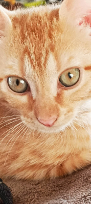 Angel est un chaton bien dans ses pattes, proche de l'humain. Il est très câlin et très joueur. Il aime jouer avec des petites balles ou des peluches. Il a grandi en maison avec ses mamans et ses frères et soeurs.
