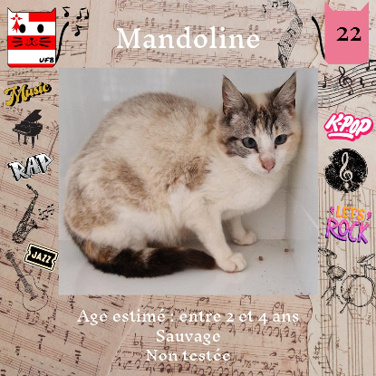 Mandoline, femelle de 2-4 ans sauvageonne (un comportement normal en fourrière) qui vous attend dans une fourrière du 22. ATTENTION SORTIE AU PLUS TARD LE 23/06/2023 (avant euthanasie) !