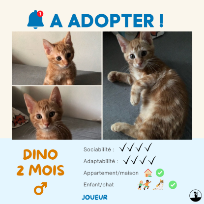 Câlin et tendresse sont les maîtres mot pour ce chaton ! Mais aussi, Dino est très joueur. Il réclamera beaucoup d’attention pour jouer avec lui Enfants, ou autres animaux, il se satisfait de la présence de tout le monde (et il adore ça)