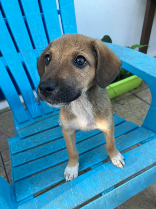 Timon est un chiot mâle qui est âgé de 2 mois et demi et qui pèse 3 kilos 200. Il sera de taille moyenne à l'âge adulte. Il est actuellement sur l'île de la Réunion mais arrive chez Erka le 20 juin.