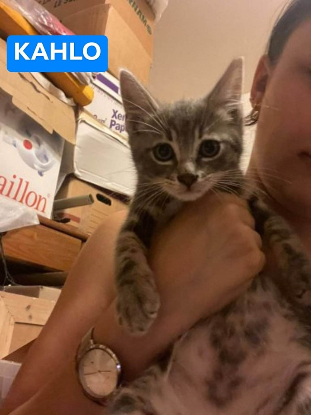KAHLO est un chaton tigré gris clair . Il est doux et joueur mais encore un peu craintif. Il aime les câlins, les gratouilles et ronronne volontiers. Il a un beau regard craquant.